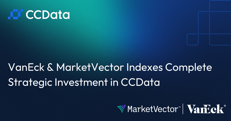 VenEck invests in CCData CCData announced that they secured a strategic investment round led by VanEck, the New York City-based asset manager. The investment comes through VanEck’s affiliate MarketVector Indexes, a leading global index provider with more than $33 billion in licensed assets tracking its benchmarks. CCData Press Release